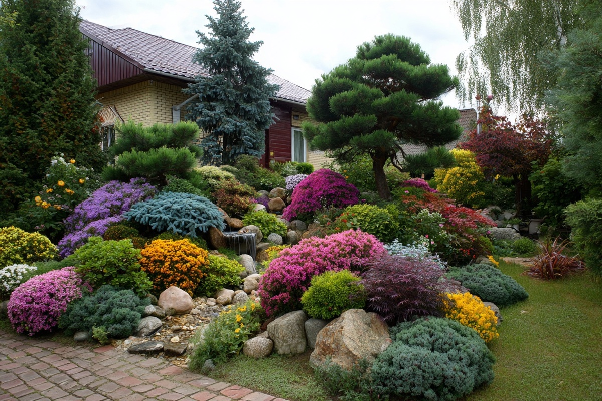 Красоту, оригинальность пейзажу добавят хвойники: горная сосна, стелющийся можжевельник, карликовая туя.