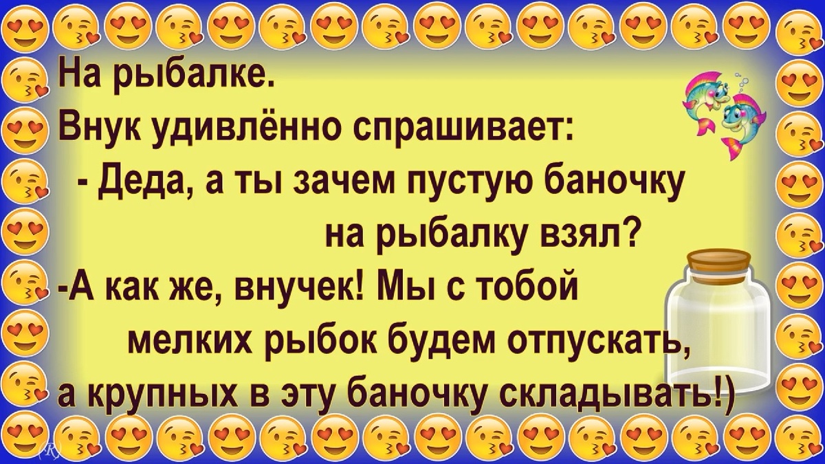 Внук, поймал небольшую рыбёшку и с восторгом говорит: