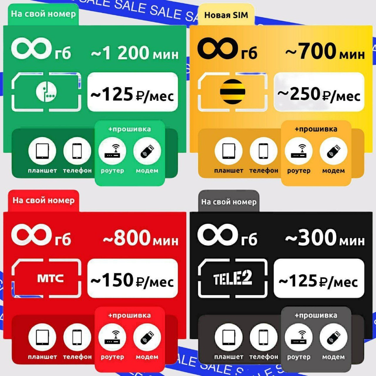 Безлимитный интернет с безлимитной раздачей, безлимитные звонки на билайн по РФ + 100 минут и 100 смс по РФ за 55₽ в месяц.
