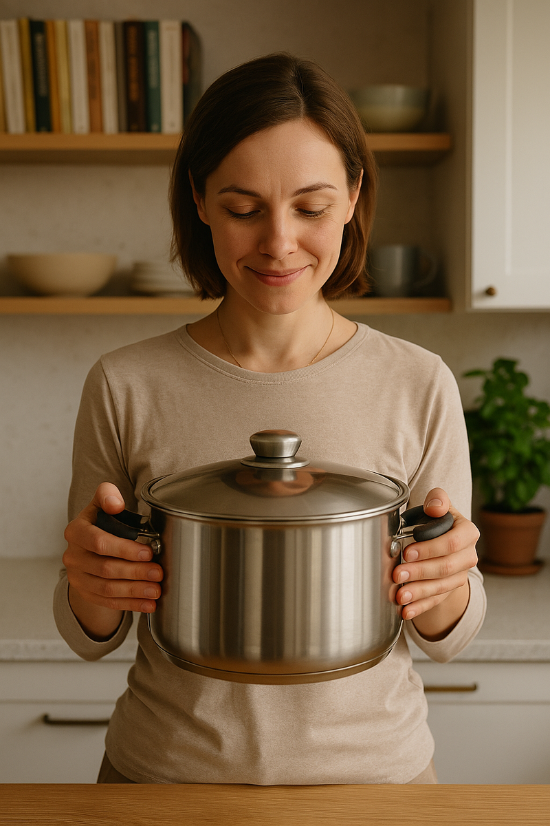 В тот день я пошла в магазин за памперсами, а вышла с кастрюлей. Ещё одной. Не знаю какой по счёту. Муж вечером сказал: – Она такая же, как вон та, – и кивнул на полку. Я в ответ покрутила новенькую в руках и вдруг поняла: мне не кастрюля была нужна. Мне нужно было напомнить себе, что я вообще-то существую. Тогда я была в декрете уже (потом оказалось, что ЕЩЁ только) третий год. В моей голове – список детских прививок, зубов, каш, ссадин и бессонных ночей. В моём шкафу – футболки с пятнами и какие-то спортивные штаны, которые я давно уже не люблю, но они удобные для прогулок с ребёнком. А в зеркале… Да кто это вообще? Женщина с небрежно замотанным пучком, с кругами под глазами и сломанным ногтем. Я? Серьёзно? Потом перестаёшь хотеть чего-либо. А потом ловишь себя на том, что "вроде всё хорошо", но внутри... какая-то пустота. Как будто всё, что в тебе было ДО – стёрлось. Ты – мама. Отличная мама. Но ты больше не прежняя ты. И вот я села дома на кухне, когда все уснули. Посмотрела сн