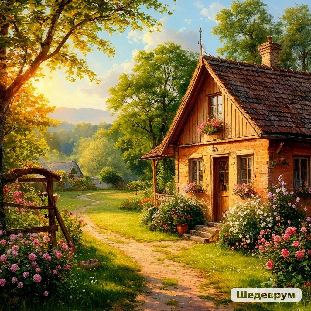 Утро раннее, лето, Солнце жарит, зной, Дача - тёплое место, Свой садовый устой. Автор Антон Власов