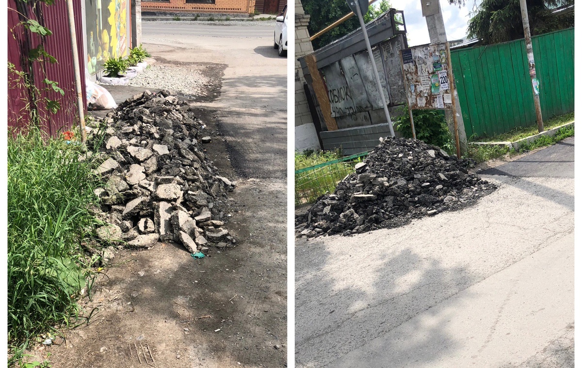 Ямы на Центральной залатали, а мусор вывезти забыли)