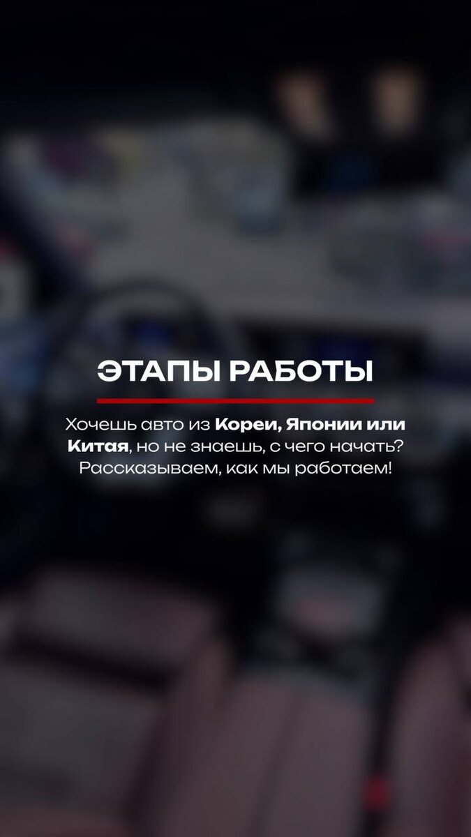 #этапыработы ⚡️Хочешь авто из Кореи, Японии или Китая, но не знаешь, с чего начать? Рассказываем, как мы работаем!👇🏼 🔥 ЭТАП 1 -КОНСУЛЬТАЦИЯ - Связываемся с вами, узнаём ваши пожелания: марка, год, пробег, бюджет. 🔥 ЭТАП 2 — ЗАКЛЮЧЕНИЕ ДОГОВОРА - Заключаем договор очно во Владивостоке или Москве. Либо по системе электронного документооборота. 🔥 ЭТАП З — ПОИСКИ, ПРОВЕРКА АВТО - Подбор автомобилей по заданным параметрам на аукционах и торговых площадках. - Детальный осмотр с предоставлением фото и видео отчётов. 🔥 ЭТАП 4 — ОПЛАТА, ВЫКУП И ДОСТАВКА - На выбранный авто выставляется инвойс и производится оплата. - Выкуп авто напрямую в Корее, Японии или Китае -без посредников, доставка до Владивостока. *Сроки доставки: Корея — до 20 дней Япония и Китай — до 40 дней 🔥 ЭТАП 5 — ТАМОЖНЯ И ОФОРМЛЕНИЕ - После прибытия - мы проводим растаможку авто. - Оплачивается таможенная пошлина и утиль сбор. - Всё официально и прозрачно - с фото/видеоотчётами. 🔥 ЭТАП 6 — ЭПТС И СБКТО - По