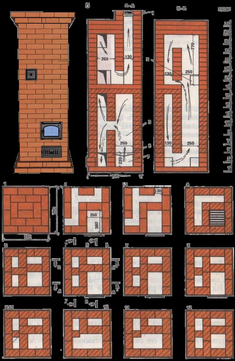 Технические характеристики отопительной печи 3 на 3 кирпича с порядовками