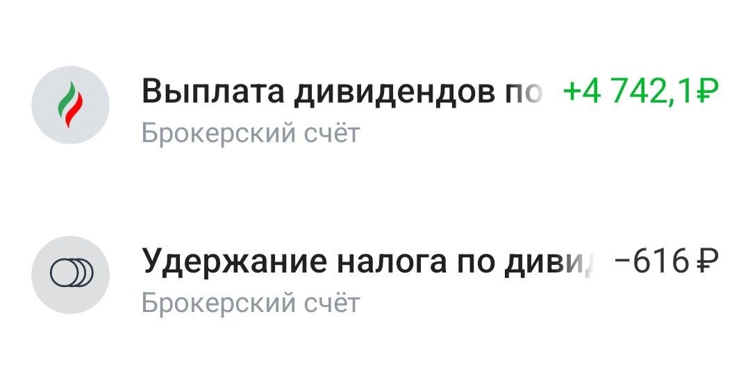 Дивиденды по Татнефть. —————————————————— Пришли дивиденды по компании Татнефть. Акции держу на имеющихся брокерских счетах. В Т-Инвестиции получил 4126,1 ₽ после вычета налогов. В БКС дивиденды в размере 1012,97 ₽. Итого - 5139,07 рублей по акциям компании Татнефть. —————————————————— В сравнении с депозитами суммы поступлений не столь большие, но тем не менее идут в капитал.