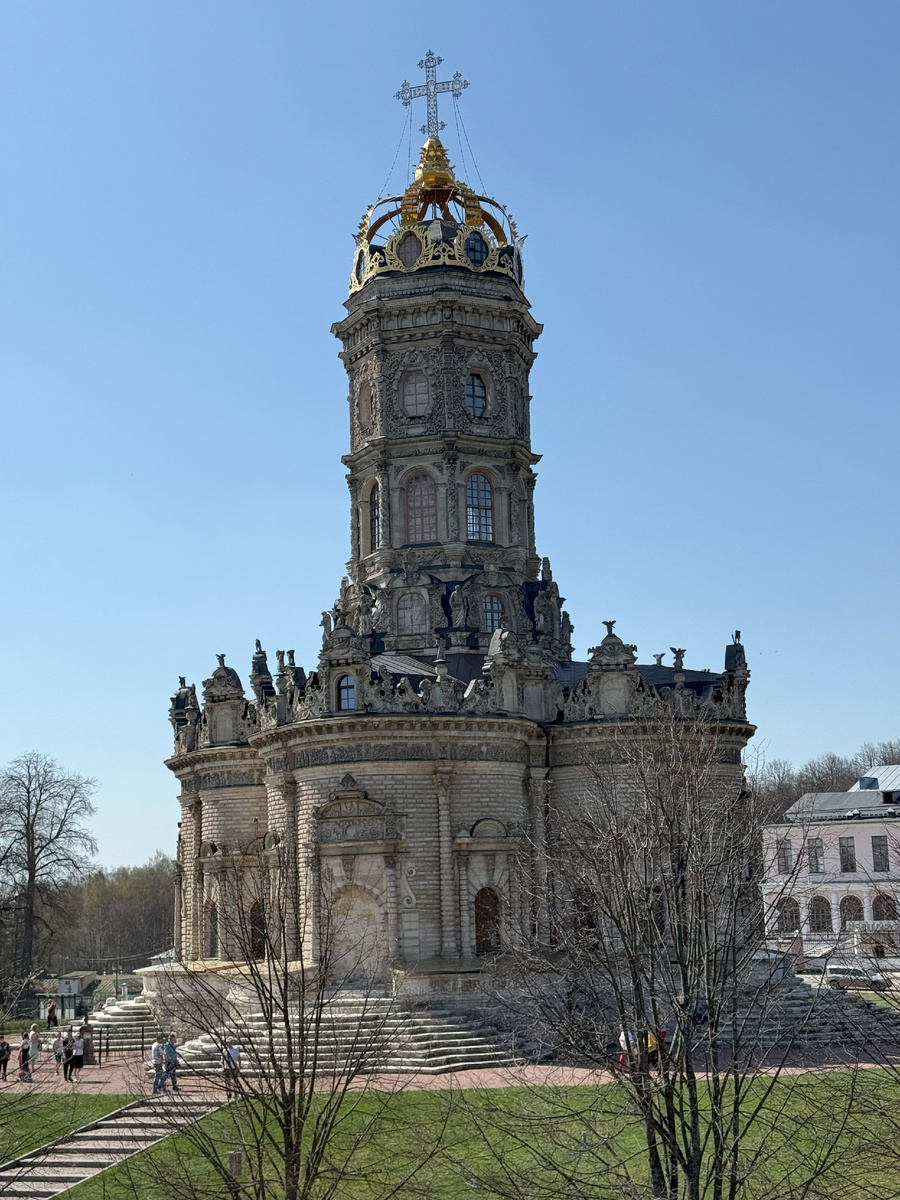 Дорога петляет среди подмосковных лесов, и вдруг за поворотом открывается нечто невероятное — будто кусочек Италии или таинственного средневекового замка перенеслись в русскую глушь. На высоком холме, где сливаются две реки, стоит церковь, словно сошедшая со страниц фантастического романа. Знаменская церковь в Дубровицах — это не просто храм. Это головоломка. Ни золотых куполов, ни привычных луковичных глав. Вместо них — ажурная корона, словно венец какого-то забытого королевства. Стены покрыты белокаменной резьбой: ангелы, святые, странные крылатые существа... Кажется, будто здание дышит, шепчет что-то на забытом языке символов. Кто и зачем построил этот храм-загадку? За всем этим стоит князь Борис Голицын — друг и наставник молодого Петра I. Человек, который, видимо, решил бросить вызов самой русской традиции. В конце XVII века скульптуры в православных храмах считались чуть ли не ересью — но здесь их десятки! А ещё — пентаграммы, трезубцы, загадочные знаки над входами. Что это? Масо