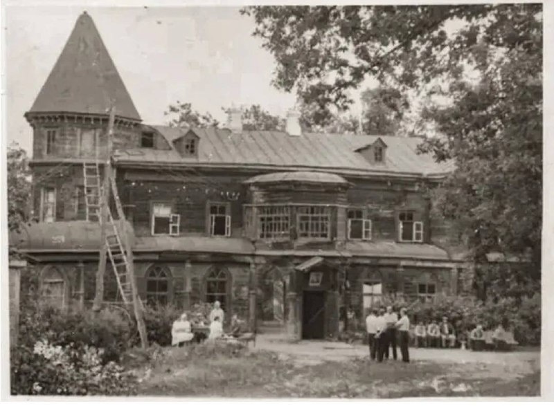 ✅1871 - Основание усадьбы обер-камергером Э.Д. Нарышкиным: построен двухэтажный деревянный дом в псевдоготическом стиле с башней, стрельчатыми окнами и галереей.