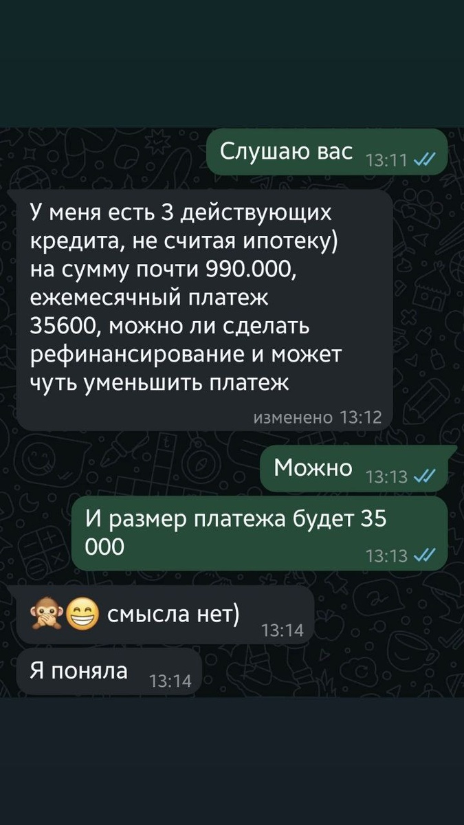 Рефинансирование ваших кредитов. Итак, вы набрали кредиты, карты и через энное количество времени стало тяжело платить и что же делать? Правильно, сделать рефинансирование. Что такое рефинансирование? Это новый кредит в банке, который вы берете, чтобы закрыть ваши текущие кредиты, карты. Соответственно, этот новый кредит вы берете по текущим условиям в банке. А текущий уровень ставок на кредиты наличными 35-38 % годовых. Иными словами условно с 1 000 000 рублей размер платежа будет 35 000 рублей в месяц. Для 90% людей, кто сейчас решили сделать рефинансирование это математически не подходит вообще. И тут мы подходит к одной очень интересной программе. У многих есть ипотека. Условно вы взяли ипотеку в 2023г на покупку квартиры. По ставке 13% годовых. Ваш долг 3 000 000 рублей. А был 4 000 000. Платёж 44 000 рублей. И плюс сейчас у нас есть кредиты, карты на сумму 3 000 000 руб. И по ним размер платежа общий 90 000 рублей. Итого по общий у вас платёж 134 000 р. Что можно сде