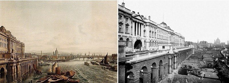 Почему река Темза высохла? На гравюре, выполненной в 1817 году, изображено здание Сомерсет-Хаус, расположенное у реки Темзы, протяженностью 400 км. В те времена лодки могли проходить через арки к пристани, чтобы разгружаться. К 1860 году река значительно обмелела. На месте её русла начали строить дорогу и пешеходные зоны, и набережная заполнилась современными элементами. По официальной версии, причиной обмеления стала волна потепления. Как температура в 30 градусов за две недели могла «испарить» реку? В своем романе "Крошка Доррит", написанном в 1850-х годах, Чарльз Диккенс описывает Темзу как "стоячую канаву", не имеющую ничего общего с живописной рекой. Вероятно, ссылаться на потепление удобно, чтобы объяснить неприятные события, оказавшие фатальное влияние на природу, в том числе на реки. Подписывайтесь на наш канал, впереди много интересного! #фото #древняяистория #тайна #альтернативнаяистория