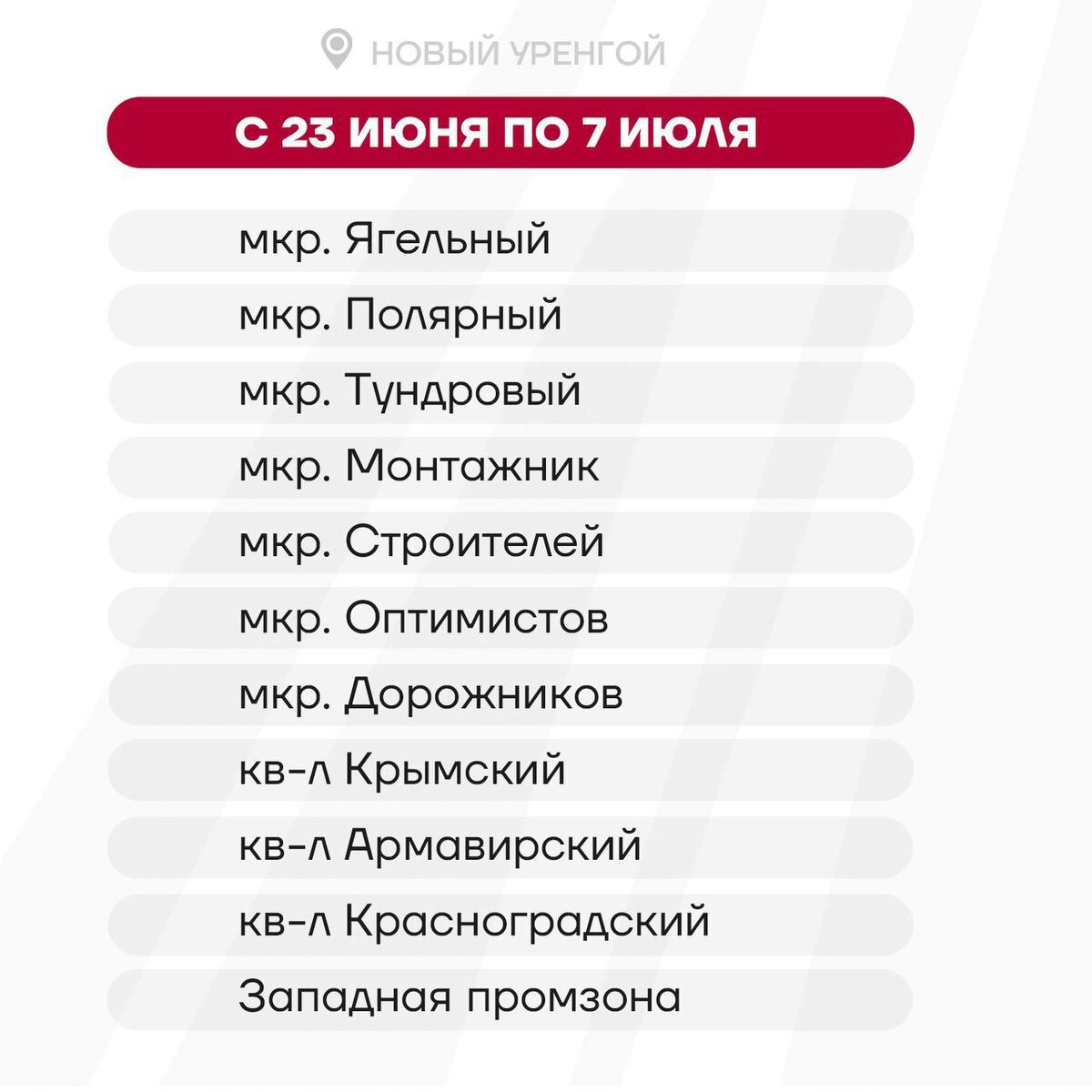 Напоминаем о первом этапе отключения горячего водоснабжения в Новом Уренгое. Перерыв подачи ГВС составит 14 дней. Проведение профилактических работ необходимо для подготовки к безаварийной работе в осенне-зимний период.