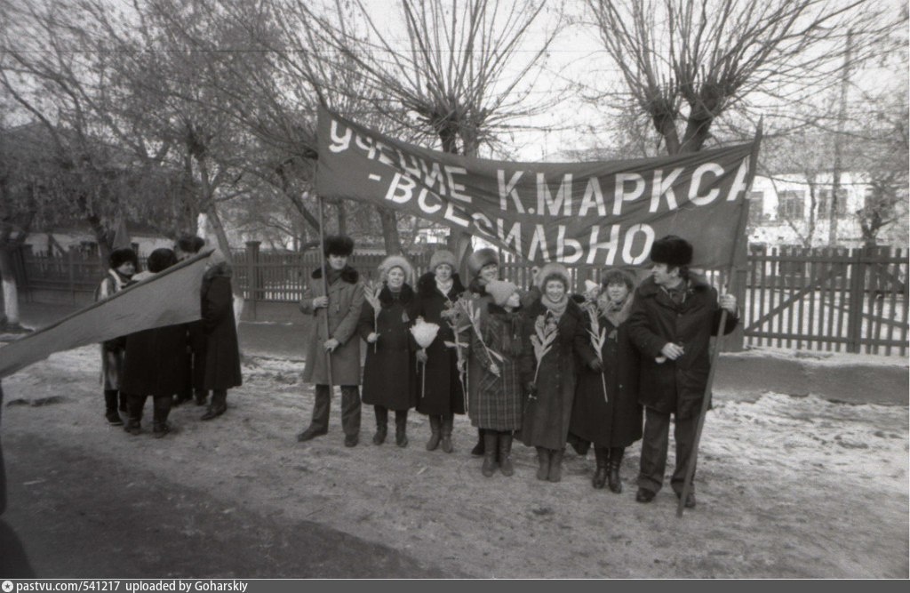Демонстранты из промторга на ноябрьской демонстрации на улице Ленина 1980—1985, Россия, Курганская область, Шадринск Автор: Сергей Еланцев https://vk.cc/cN33wH