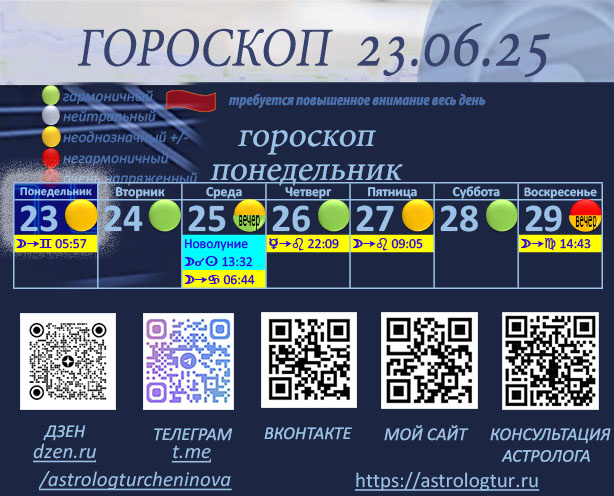 Гороскоп на понедельник 23.06.25 + обзор на неделю с 23 по 29 июня 2025
