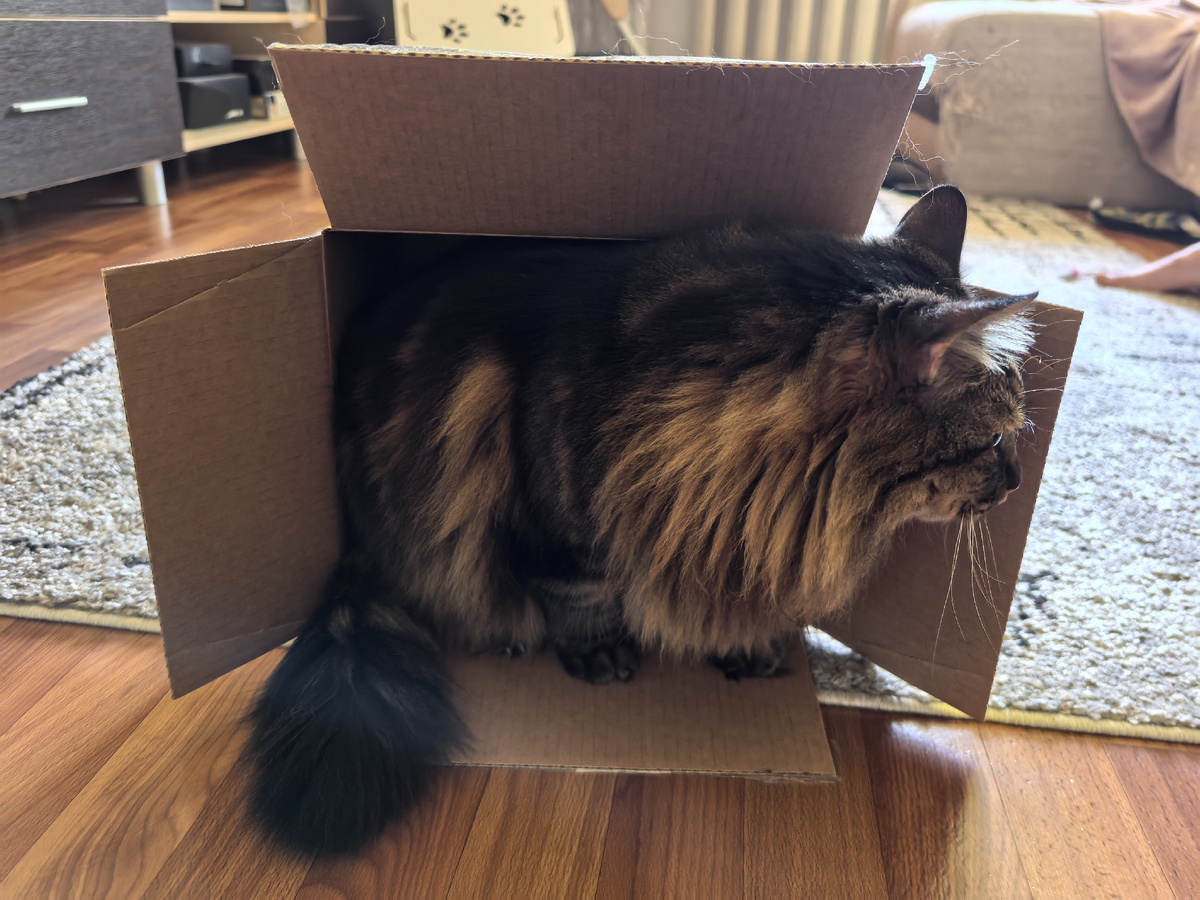 Потом мы играли с коробкой. Но тут пришла хозяйка, а я сказал, что не снимаюсь, и ушёл: