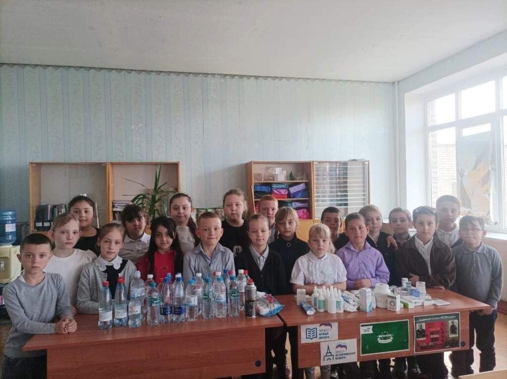 Акция «Крышечка Победы» тоже посвящена 80-летнию Великой Победы, но нужна и важна она стала именно сейчас, для наших защитников, находящихся на СВО, для того, чтобы поддержать бойцов. Учащиеся и сотрудники школы приняли активное участие в этой акции, которая проходила в школе. За несколько недель было собрано огромное количество пластиковых крышек. Цель акции — организовать сбор пластиковых крышек от газированных и молочных напитков, воды, сока, детского пюре и растворимых напитков. Эти крышечки играют важную роль в жизни наших защитников, которые сражаются на передовой в зоне СВО. Из них на специальном принтере изготавливают необходимые предметы для нужд фронта. Заслуживает внимание акция «Живой родник», где приняли участие школьники и их родители. Они собрали воду для воинов и написали им слова поддержки. Цель акции — помощь в приобретении питьевой воды для бойцов СВО. Вода в малолитражной таре — 0,5 и 1,0 удобна в использовании бойцами на передовой линии. Огромная благодарность всем