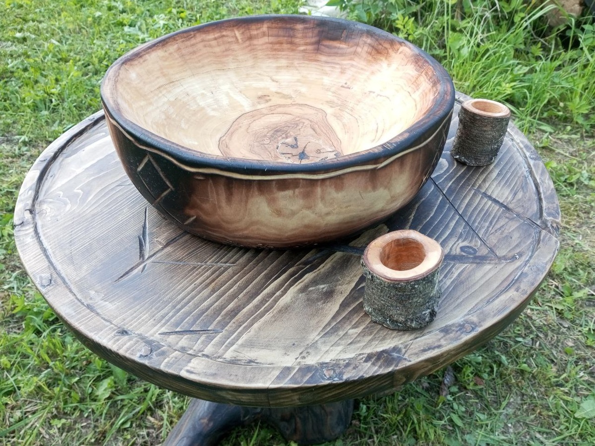 Само по себе липа дерево скучноватое. Ярко выраженной текстуры нет. Ни обжечь, ни маслом выделить.Только вырезать на ней или резать из нее. Но можно просто нанести несколько грубых орнаментов из нашего славянского(татарского,эскимосского,и.т.д.)прошлого, добавить обжиг, состарив изделие и вот уже у нас в руках не просто кусок безликой древесины с углублением, а оригинальная посуда, которая украсит и стол и дом. Липа, обработка льняным маслом. Диаметр 33см. Высота 9см. #мастерскаязарубин, #деревянныеизделия, #изделияиздерева, деревяннаяпосуда, #тарелка, #фруктовница, #блюдо, #ручнаяработа