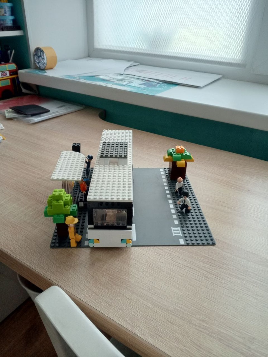 Мини-экспозиция «Междугородний автобус на остановке» я взял дорожную пластину, 2 дерева, остановку и несколько человечков