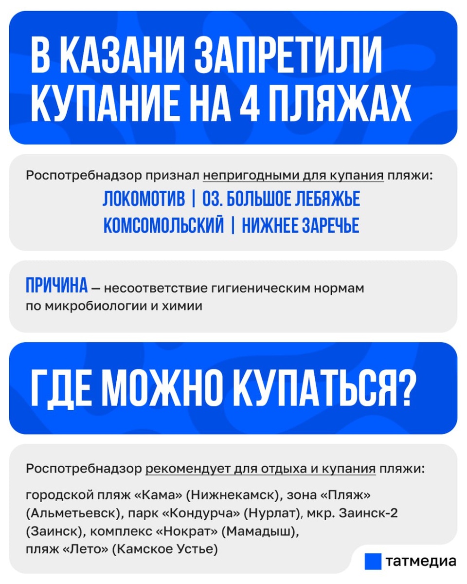 ❕🤿 Вода на четырех казанских пляжах непригодна для купания Конечно, и погода купаться пока не позволяет, но берегите здоровье и выбирайте проверенные места! @tatmediaofficial