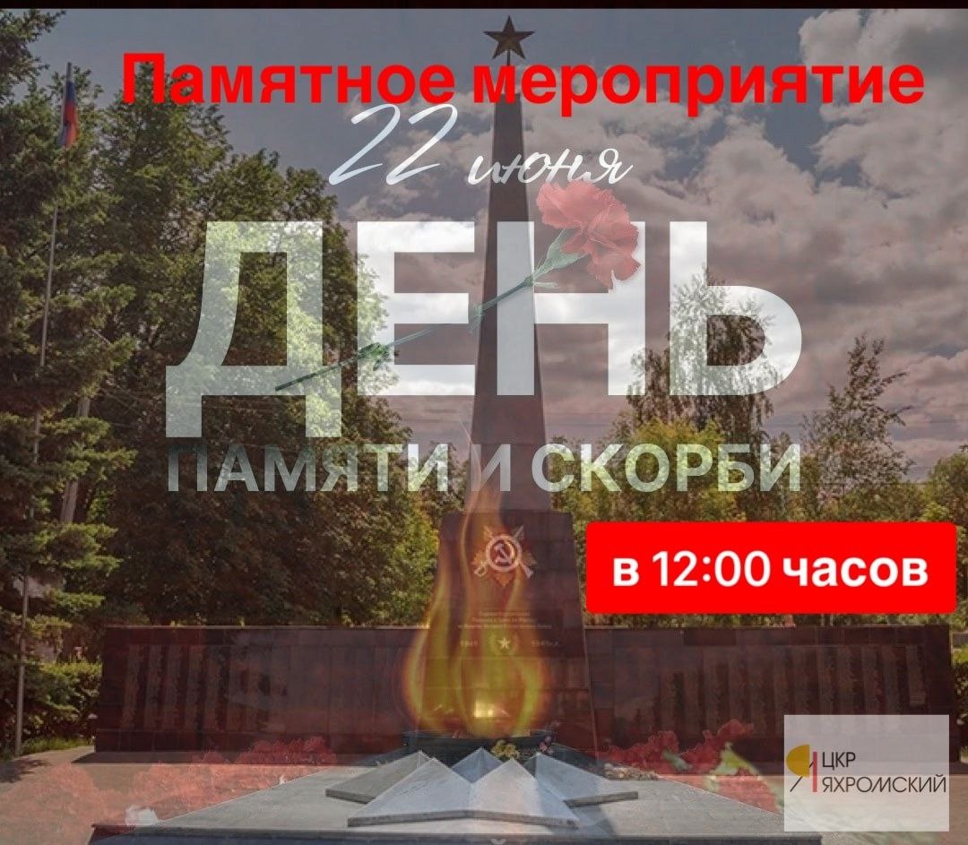 Сегодня 22 июня в 12:00 часов у мемориального комплекса «Стела героям-яхромчанам, павшим в боях за Родину на фронтах Великой Отечественной войны в 1941–1945 гг.» на площади генерала Кузнецова пройдёт памятное мероприятие, посвящённое Дню памяти и скорби.