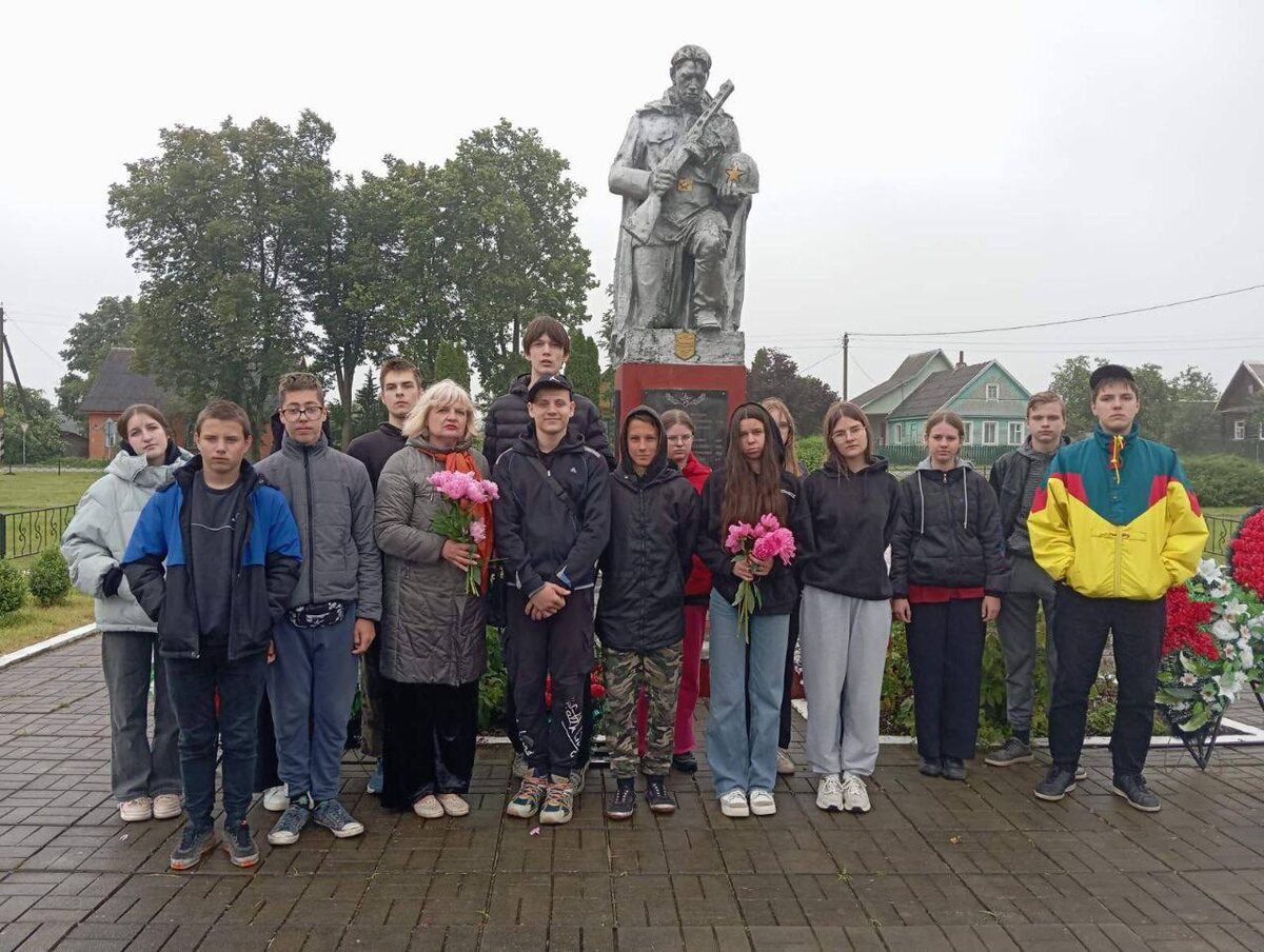 Ребята почтили память погибших во время Великой Отечественной войны возложением цветов и минутой молчания. Библиотекарь напомнила присутствующим о первых днях войны на Видзовщине