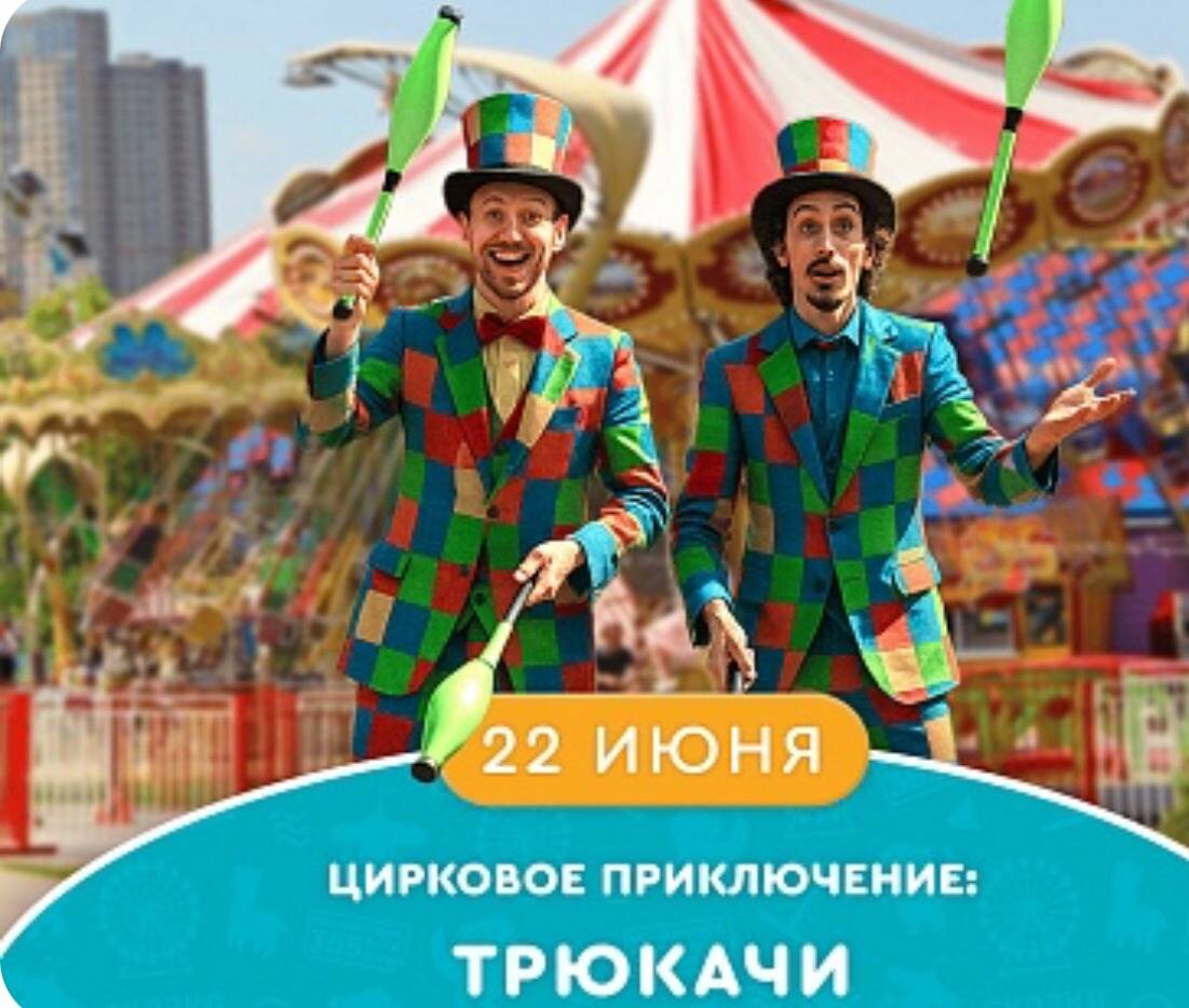 🆓Фестивальный день «Цирковое приключение: Трюкачи» в @parkskazka 🗓️22 июня 📍парк «Сказка», ул.Крылатская, 18 Вас ждет игровая программа с подарками, выступлением детского коллектива "Лучшее детство", а также захватывающим шоу Але-ап. В программе: яркие костюмы, красочный реквизит, интересные номера, включая Диаболо, Летающую трость, фокусы и жонглирование булавами на высоте. Завершится день веселой дискотекой с мыльными пузырями, обещая незабываемые впечатления для всех участников. Программа дня «Цирковое приключение: Трюкачи»: 22 июня — Цирковое приключение: Трюкачи • 13:00 - 14:00 — Игровая программа с подарками. • 14:00 - 14:30 — Выступление детского коллектива "Лучшее детство". • 14:30 - 15:00 — Шоу Але-ап. Цирковые артисты Але и Ап откроют для вас мир цирка, удивляя настоящими трюками и интересными номерами. Зрители смогут стать частью циркового представления! • 15:00 - 15:30 — Игровая программа с подарками. • 15:30 - 16:00 — Дискотека с мыльными пузырями. 🆓Бесплатно
