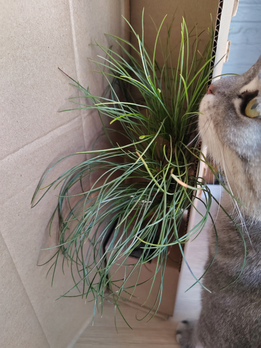 Первым хвойным, которое появилось у меня после того, как участок стал полностью моим, стала гималайская сосна или сосна Валлиха (Pinus wallichiana). Понравилась длиной хвои и голубоватым оттенком. И по описанию, собранному с нескольких сайтов и блогов, должна неплохо себя чувствовать на Кубани. Приехала она ко мне с WB в P9 вот в таком виде: Пересадила ее в горшок побольше и оставила на южном окне. Сосна довольно быстро проснулась и начала гнать приросты. Несмотря на то, что находилась в помещении с недостатком освещения, "свечки" росли ровными, в сторону окна не отклонялись. С потеплением сосна в горшке переехала на улицу. Потепление в этом году было странным, несколько раз сменялось резким похолоданием до 0 и внезапными сырыми ветрами. Сосна опять же перенесла такие выверты стойко, несмотря на юный возраст и казалось бы тепличное выращивание. В начале мая состоялась перевалка в еще больший горшок, когда из дна предыдущего показались корни. Плюс, на юге есть опасность перегрева корне