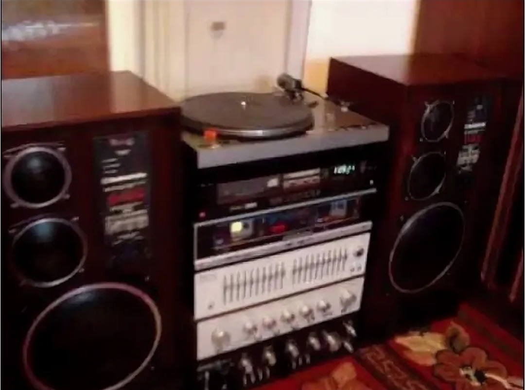 ... чтобы показать стерео-систему времён СССР в оригинальном, то есть реальном интерьере. Постановочных фото на эту тему предостаточно, а вот настоящих, увы. Они конечно есть у многих в домашних фото-архивах, но вот на просторах интернета такие материалы найти не просто. Для данной статьи из сторонних фото я нашел лишь два, да и к тем есть вопросы. Первое - заглавное явно уже из 90-х, поскольку из аппаратов присутствующих на фото кассетная дека (Вега-МП122) и CD- проигрыватель (Вега-ПКД122 - надеюсь правильно идентифицировал) массово появились в продаже уже после 90-го года. Да и акустические системы "Радиотехника S-90D" пошли в серию в 1990-м году. А вот остальное из 70-80-х. Проигрыватель пластинок (похоже это Ария-102), эквалайзер Прибой Э-014 (у меня такой был в 1988 году) и усилитель Одиссей-010 родом из 80-х. А вот Бриг-001 это середина 70-х (выпускался с 1975-го). Но поскольку фото плохого качества, то возможно что это не Бриг, а Барк. Впрочем, это те же "Фаберже", только сделанные на другом заводе. Зачем владельцу данной системы два усилителя можно лишь предполагать, но для начала 90-х данный комплект считается солидным и не дешёвым. 3300-3400₽ по розничной цене всё это суммарно стоило. Самым дорогим компонентом был CD- проигрыватель, следом шла кассетная дека. А самым дешёвым был эквалайзер (190₽).