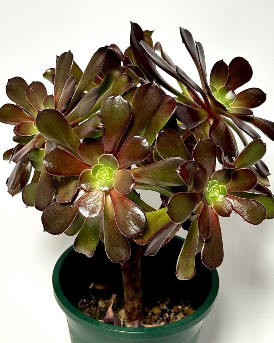 🌿 Эониум - это род суккулентов семейства Толстянковые. Эти растения происходят с Канарских островов, Марокко и Восточной Африки. По внешнему виду могут значительно различаться и по расцветке и по форме роста. В комнатной культуре часто встречаются древовидные эониумы. Любит солнце, умеренные поливы. Для посадки используйте тесные горшки и хорошо дренированные, невлагоемкие субстраты.