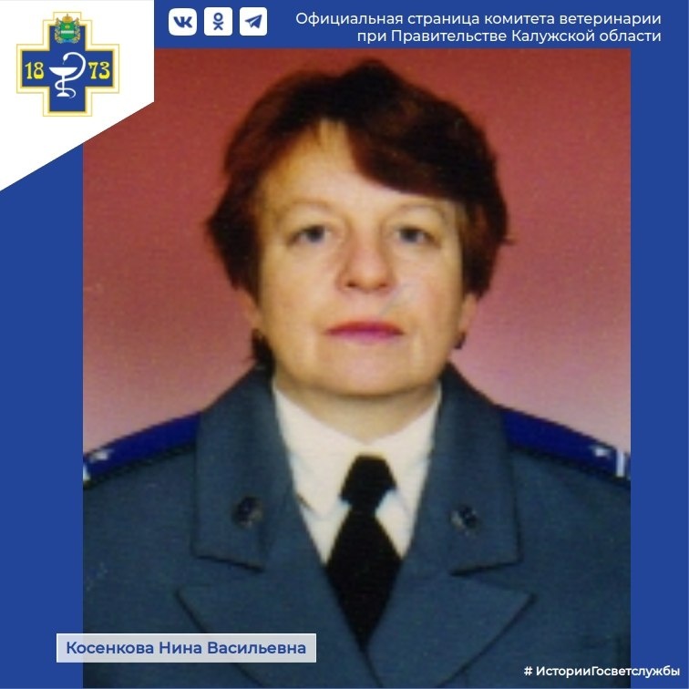 История ветеринарной службы Куйбышевского района Косенкова Нина Васильевна. Её ветеринарная деятельность началась в 1970 году после окончания Калужского совхоз – техникума в к-зе «Советская Россия» Куйбышевского района в должности веттехника. В 1976 году, закончив заочно Витебский ветеринарный институт, была переведена на должность главного ветврача к-за «Советская Россия». В 1989 году она пришла работать на ветстанцию и была назначена на должность ветсанэксперта 2 категории. В 1992 году переведена на должность главного ветврача ветстанции и проработала в этой должности до 2010 года, откуда и ушла на заслуженный отдых. В период многолетней трудовой деятельности была неоднократно награждена почётными грамотами администрации Куйбышевского района, грамотой комитета ветеринарии при Правительстве Калужской области, Благодарственным письмом Губернатора Калужской области и грамотой Минсельхоза России.