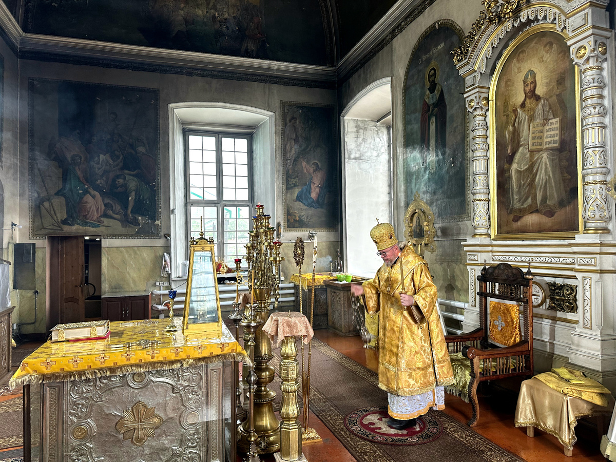 21 июня 2025 года, в канун 2-й недели по Пятидесятнице, Всех святых в земле Русской просиявших, епископ Отрадненский и Похвистневский Никифор возглавил вечернее Богослужение в храме в честь Вознесения Господня с.Кинель-Черкассы.