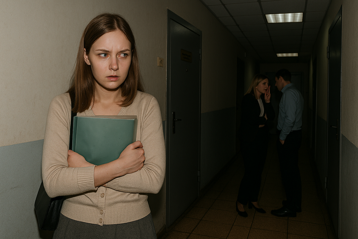 Идет по коридору и думает — что делать? Рассказать Михаилу Андреевичу? А как это выглядеть будет? Скажут — ябеда. Уволят. А ей работу терять нельзя — скоро рожать.