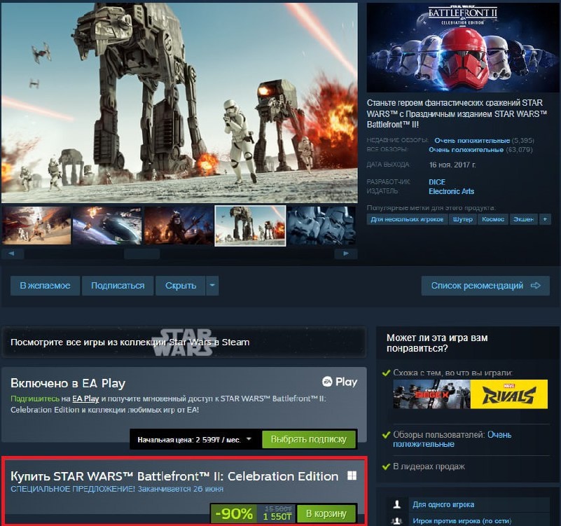Халява: в Steam отдают Star Wars Battlefront II по цене шаурмы это полное издание со всеми плюшками
