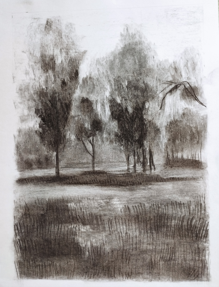 Графика. Второй год занимаюсь в школе рисования для взрослых - закрываю гештальт. Люблю еловый лес, особенно в черно - белом варианте. Полнолуние... Есть в этом что - то сказочное.