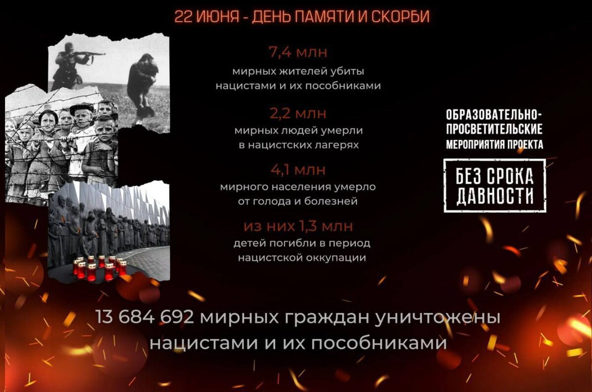 22 июня 1941 года началась Великая Отечественная война. Этот день вошел в календарь как День памяти и скорби. 🕯️ За 1418 дней войны погибли 26,6 миллионов человек, разрушены более 1,7 тысяч советских городов, свыше 70 тысяч сел и деревень. 🏚️ #КолледжКоломна присоединяется к Всероссийской акции «Память священна» в рамках образовательно-просветительских мероприятий проекта «Без срока давности». 📚 Будем помнить о жертвах нацизма, горе и трагедии, которые несут нацизм и фашизм. ✊🕊️ #85летСПО #СПОмедиа #ГодЗащитникаОтечества #Победа80 #Победа80 #помним