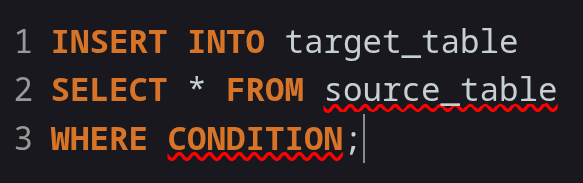В PostgreSQL есть несколько способов копирования данных из одной таблицы в другую. Рассмотрим основные методы: sql INSERT INTO target_table SELECT * FROM source_table; INSERT INTO target_table (column1, column2, column3) SELECT column1, column2, column3 FROM source_table; INSERT INTO target_table SELECT * FROM source_table WHERE condition; CREATE TABLE new_table AS SELECT * FROM source_table; INSERT INTO schema1.target_table SELECT * FROM schema2.source_table; INSERT INTO target_table (id, name, processed_data) SELECT id, name, UPPER(data) FROM source_table; -- Экспорт в файл COPY source_table TO '/path/to/file.csv' WITH CSV HEADER; -- Импорт из файла COPY target_table FROM '/path/to/file.csv' WITH CSV HEADER; 1. Типы данных в исходной и целевой таблицах должны быть совместимы 2. При копировании в существующую таблицу убедитесь, что нет конфликтов с ограничениями (PRIMARY KEY, UNIQUE и т.д.) 3. Для больших таблиц используйте транзакции: BEGIN; INSERT INTO target_table SELECT * FROM so