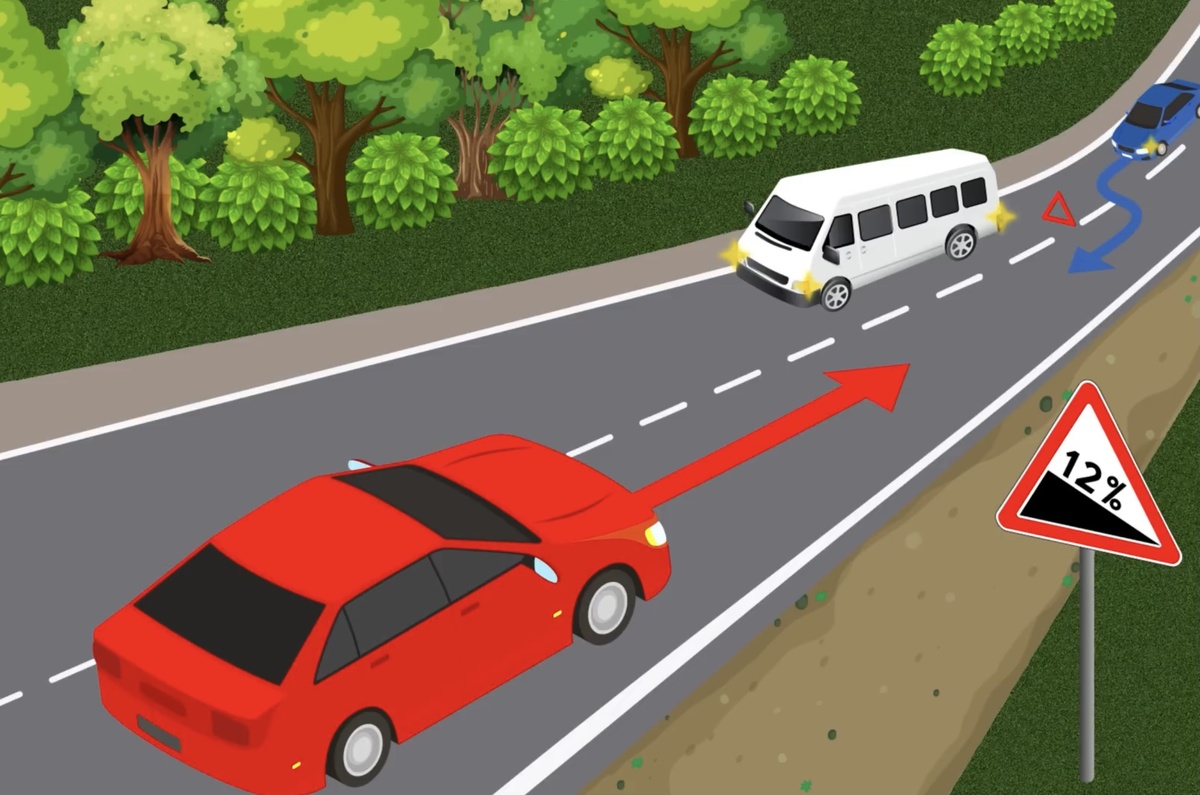 Доброго времени суток! В этой задаче, нам нужно определить, кто должен уступить дорогу. Ответ 1. Водитель красного автомобиля. Ответ 2. Водитель синего автомобиля. Друзья, свои варианты ответа напишите в комментариях, а в конце посмотрим, удалось ли вам ответить правильно на эту сложную задачу. Надеемся, все ответили правильно, а мы переходим к разбору этой дорожной ситуации. На рисунке с заданием мы видим два легковых автомобиля, которые движутся по встречным направлениям, а также сломанный микроавтобус на полосе движения синего авто. О том, что микроавтобус сломан, сигнализирует выставлен знак аварийной остановки, а также включенная аварийная сигнализация. Для того, чтобы объехать автобус, водителю синего авто необходимо выехать на полосу встречного движения, по которой движется красный автомобиль, что делает беспрепятственный разъезд невозможным, кто-то один должен уступить дорогу. Нам надо обратить внимание на наличие дорожного знака по правой стороне от красного авто, это знак