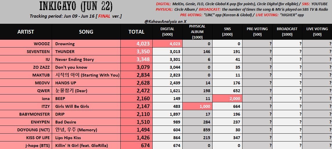 Согласно окончательному прогнозу, нам не хватает цифровых баллов, поступающих от потоковой передачи корейских музыкальных платформ.