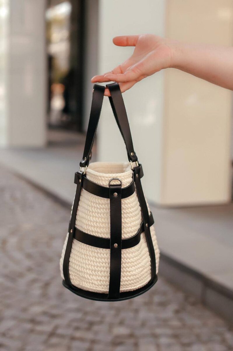 Мы открыли продажу Lasse отдельными мотками, чтобы вы могли купить еще пряжи и связать второй вкладыш на смену - например, вы купили набор «белая кожа + белый лассе» и можете отдельно докупить черный лассе, чтобы менять сумку по настроению