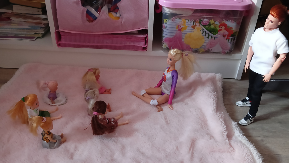 Тейт удивился и решил поближе понаблюдать. Это было так мило)) Лея показывала упражнения с серьезным лицом, а мелкота выполняла кто во что горазд, переодически хихикая)