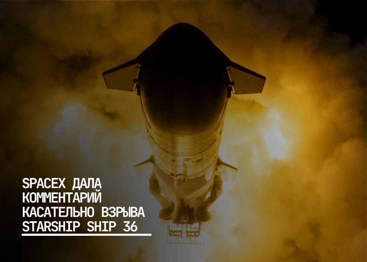SpaceX дала комментарий касательно взрыва Starship Ship 36: Инцидент не представляет угрозы для населения в районе Рио-Гранде-Вэлли. Компания также подтвердила, что вся команда Starship была в безопасности. Несмотря на явный удар по планам на запуски в этом году, SpaceX традиционно рассматривает такие события как возможность собрать дополнительные сведения и данные для последующего анализа и предотвращения подобных случаев в будущем. На данный же момент нет однозначного мнения что это могло быть, но пока всё указывает на брак COPV-баллона. Ожидаем больше информации.