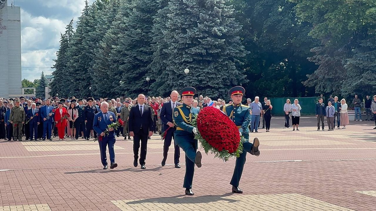 На Мемориале павшим в годы Великой Отечественной войны прошла церемония возложения венков и цветов. В День памяти и скорби, 22 июня, у Мемориала павшим в годы Великой Отечественной войны состоялось возложение венков и цветов к Вечному огню.Это мероприятие стало важным моментом чествования памяти тех, кто отдал свою жизнь за Великую Победу 84 года назад.Мы должны помнить и чтить память тех, кто отдал свои жизни в Великой Отечественной войне, начавшейся 22 июня 1941 года.Это день скорби и уважения к миллионам советских граждан — солдат, партизан и мирных жителей, павших и пострадавших в результате агрессии фашистской Германии. В церемонии приняли участие врио губернатора Курской области Александр Хинштейн , исполняющий обязанности главы города Сергей Котляров , председатель КГС Владимир Токарев, председатель городского совета ветеранов Иван Малков, представители городской и областной администраций, ветеранских организаций, а также студенты, волонтеры и неравнодушные жители Курска. Пом