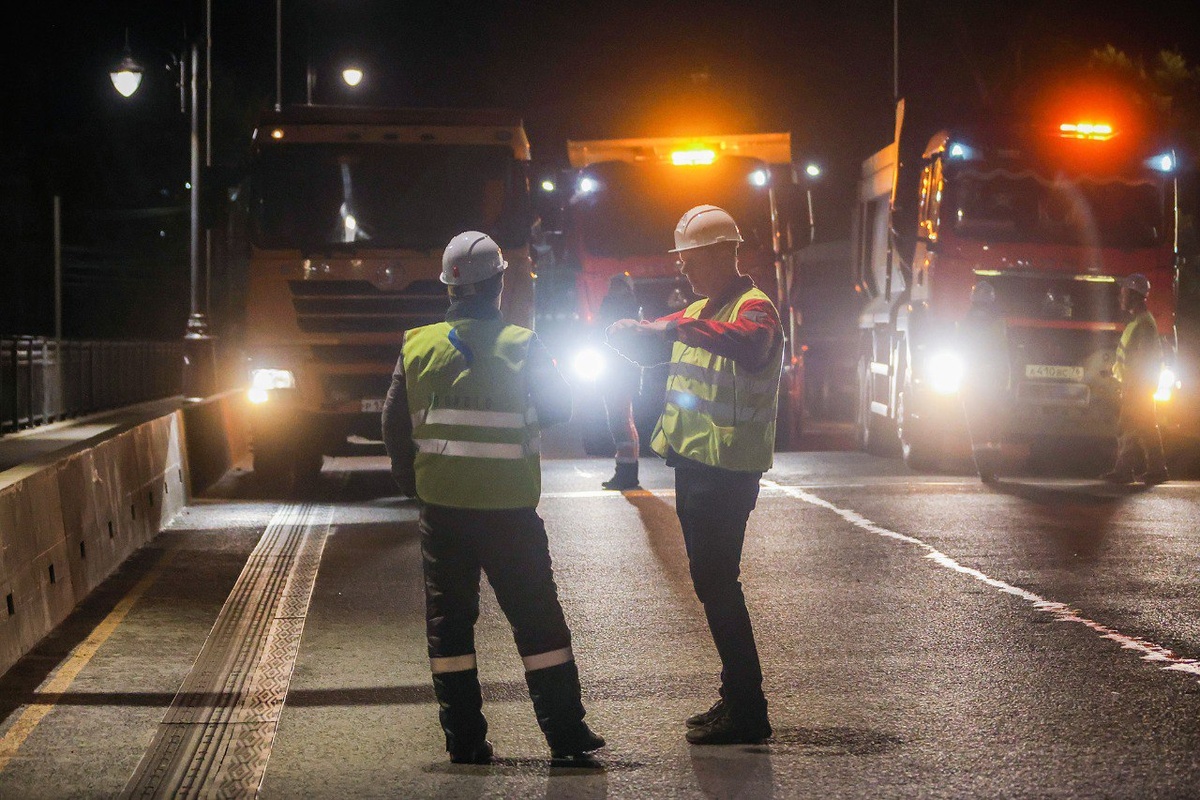 Волшебно⭐ Две ночи в Рыбинске проводили испытания моста: четыре 25-тонных самосвала медленно ездили, проверяя на прочность обновленные плиты конструкции. Вместе с рабочими на объекте трудился фотограф Алексей Фокин.