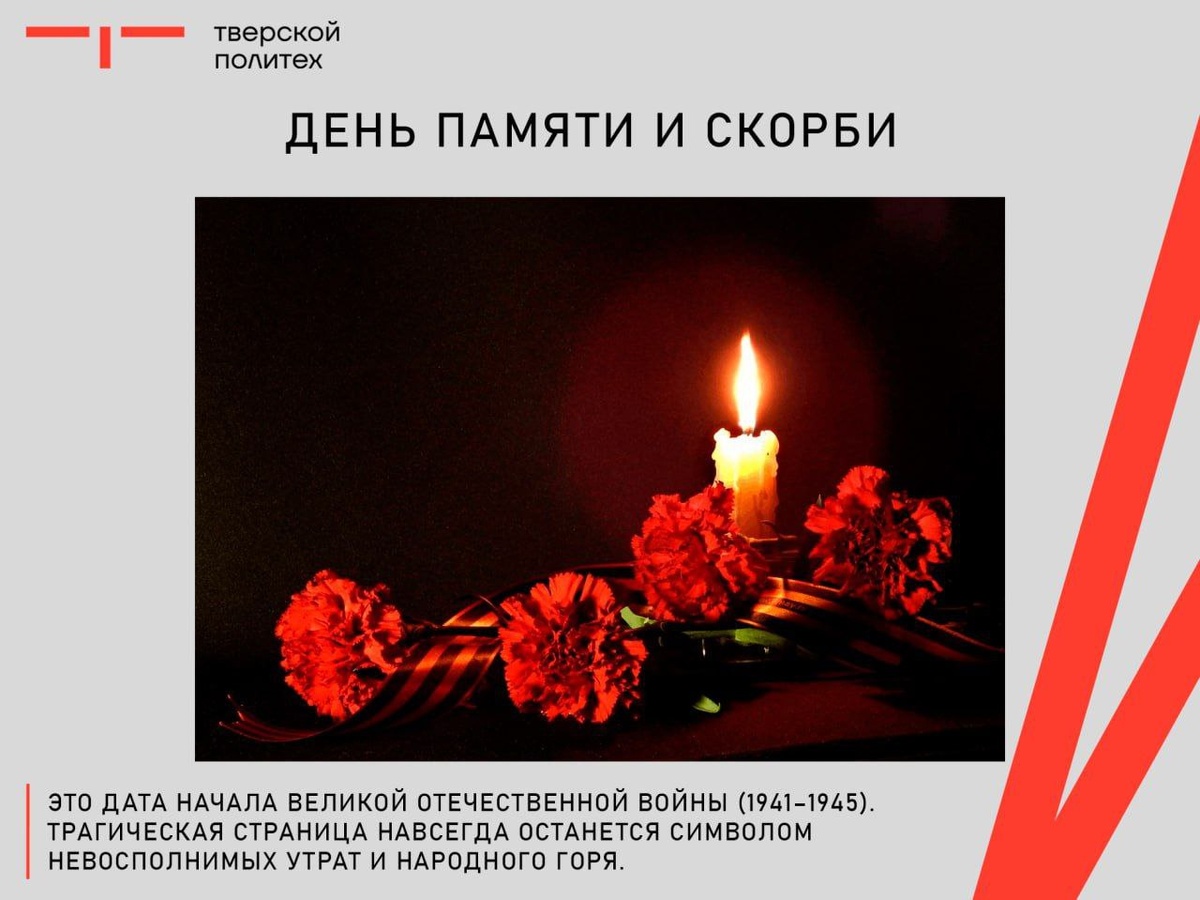 ⭐️ 22 июня – День памяти и скорби 22 июня 1941 года началась Великая Отечественная война: войска нацистской Германии напали на Советский Союз. Это одна из самых печальных дат в истории России – день начала самой страшной и кровопролитной войны, унесшей миллионы жизней. День памяти и скорби — напоминание об утратах и мужестве народа нашей страны, который принял на себя самый мощный удар, встал на защиту Родины от врага и 80 лет назад одержал Великую Победу. #ТвГТУ #Политех #памятныедаты
