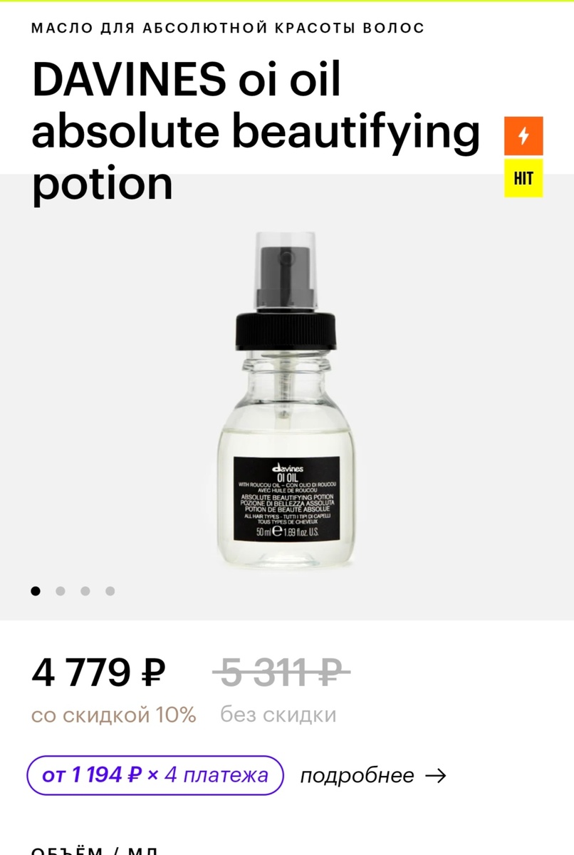 Я думаю, все слышали про это знаменитое масло для волос, которое придаёт голове ухоженный вид. Но цена, конечно, не очень приятная за 50 мл.