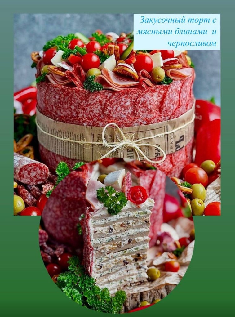 Жил-был на праздничном столе необычный торт. Он не знал сладкого вкуса и не мечтал о свечах — ведь он был закусочным мясным тортом с блинами, черносливом и колбасным нарядом. Каждый слой его скрывал целую историю: один — о пикниках на лугу, другой — о тёплых вечерах у костра, третий — о бабушкиных блинах с мясом и секретной начинкой. Чернослив добавлял тайны, а солёные оливки и сыр сверху — характер. Овощи и зелень, словно гости на балу, украсили его макушку, а салями закутала в ароматный плащ. Все блюда на столе сначала посмеивались над странным тортом — от десерта в нём не было ни грамма. Но когда пришло время угощений, гости сперва взялись за него. — Вот это вкус! — воскликнул один. — Настоящий герой стола! — поддержал другой. И понял торт: неважно, из чего ты сделан — главное - приносить радость и быть приготовленным с душой. С тех пор его звали не просто закуской, а праздничным чудом — Тортом-Мясодаром! Узнать о полном ассортименте и сделать вкуснейший заказ Вы можете по теле