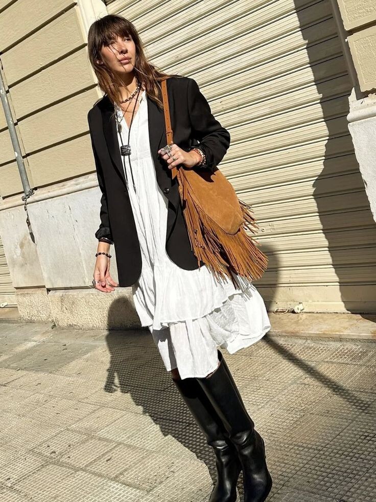 Если вам за 30, но душа протестует против скучных офисных образов, этот стиль — ваш идеальный компромисс. Он сочетает в себе женственность бохо и бунтарский дух рокера, создавая образ, в котором можно и на свидание пойти, и на байке прокатиться (ну или хотя бы сделать вид, что вы вот-вот это сделаете 😉).