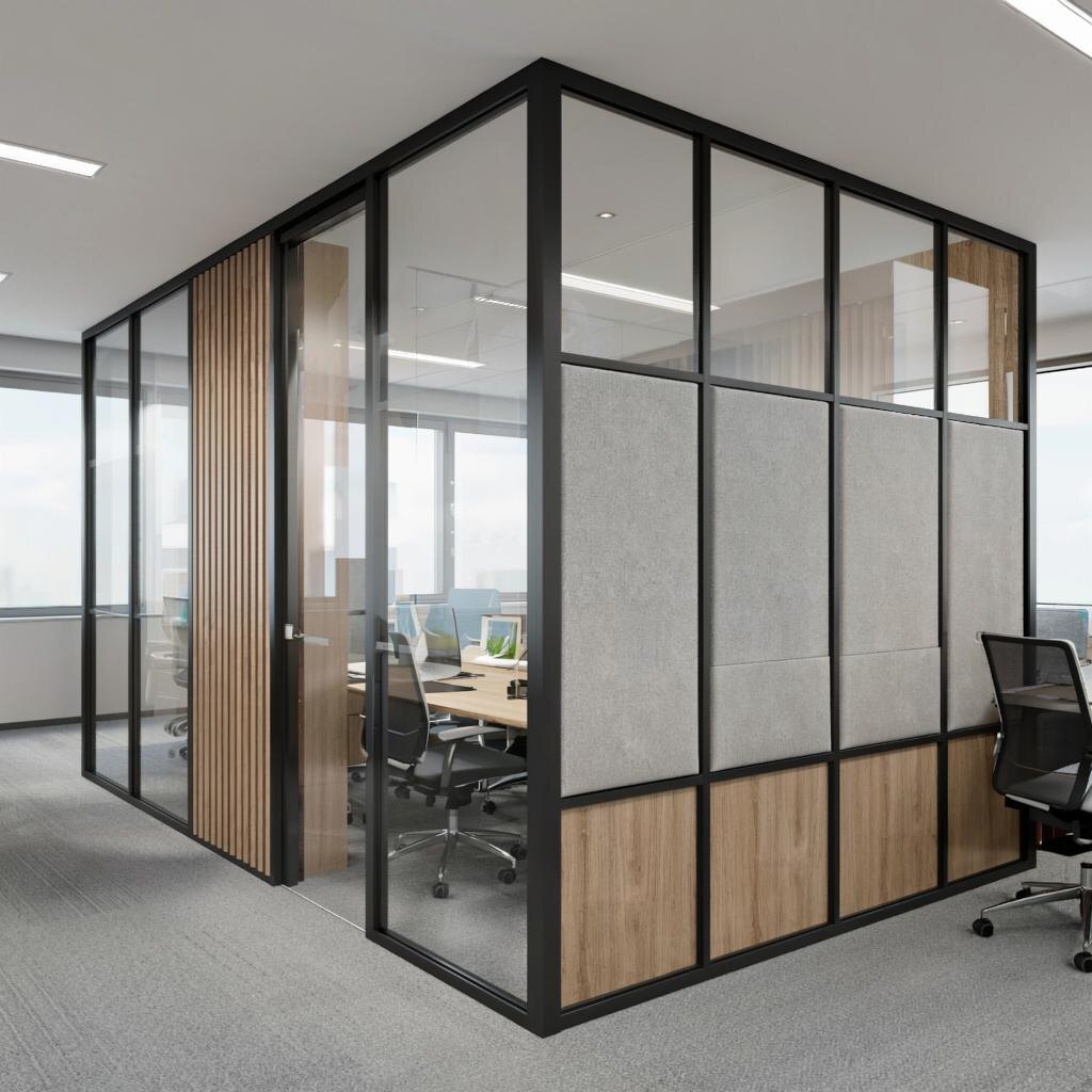 ▌ Офисные перегородки: как правильно разделить рабочую зону? Офисные перегородки — отличный способ создать уют и комфорт даже в самом большом офисе. Они помогают зонировать пространство, обеспечивая каждому сотруднику личное рабочее место, где можно сосредоточиться на важных делах и отдохнуть от шума коллег. Но выбирать перегородки тоже надо уметь. Например, прозрачные стеклянные панели визуально расширяют помещение и наполняют его светом, однако не обеспечивают должной звукоизоляции. Зато матовые или декоративные экраны создают приватность и защищают от посторонних взглядов. Хотите сохранить ощущение простора и одновременно повысить уровень комфорта сотрудников? Обратите внимание на комбинированные решения: верхние части перегородок сделайте прозрачными, а нижние — глухими. Это обеспечит оптимальный баланс между свободой пространства и конфиденциальностью рабочего процесса. Кстати, современные технологии позволяют устанавливать специальные акустические вставки прямо внутрь офисных