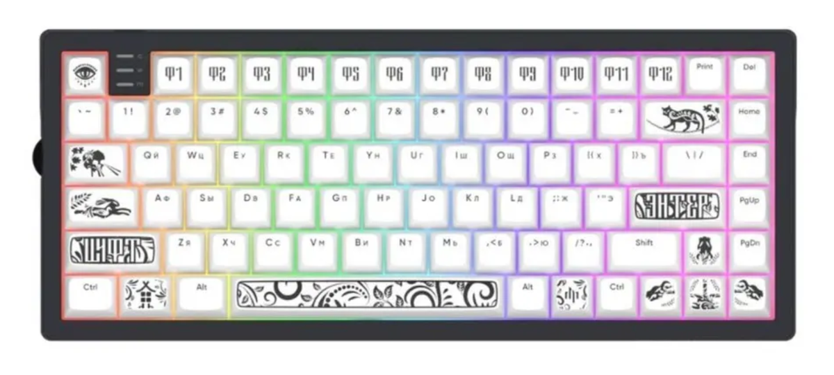 На фоне засилья однотипных механических клавиатур с привычными формами и западными брендами, российская модель Dark Project KD83A G3ms Magnetite выглядит как настоящее свежее решение. Это не просто устройство ввода, а технологичный инструмент с характером, созданный для тех, кто ценит качество, точность и оригинальный подход к дизайну. Внутри клавиатуры установлены магнитные переключатели собственного производства. Они работают по технологии Hall Effect — точка срабатывания улавливается не механическим замыканием, а с помощью магнитного поля. Что это даёт: Клавиатура оформлена с применением нестандартных символов, узоров и стилизованной кириллицы на клавишах. Это придаёт ей национальный колорит, который отлично сочетается с RGB-подсветкой. Модель выпускается в ограниченной серии, и такой внешний вид точно не останется незамеченным ни в офисе, ни на стриме. Dark Project — бренд родом из России. Их продукция уже получила признание в геймерском и профессиональном сообществе. KD83A G3ms M