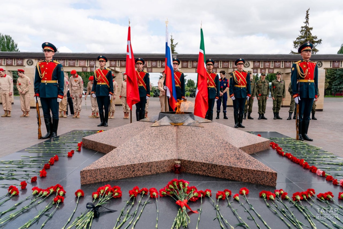 В ответ на пост 🎖🌹 В Казани почтили память героев войны у Вечного огня 22 июня в парке Победы прошла церемония возложения цветов в честь Дня памяти и скорби. У Вечного огня собрались ветераны, «Юнармия», «Молодая гвардия» и участники автопробега «Сила единства». Звучали гимны России и Татарстана, минутой молчания почтили павших. @tatmediaofficial