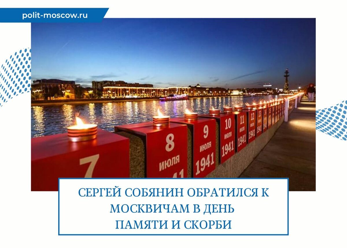 Сергей Собянин обратился к москвичам в День памяти и скорби В годовщину начала Великой Отечественной войны Сергей Собянин напомнил горожанам о стойкости и героизме народа, вставшего на защиту родной земли. «Сегодня — День памяти и скорби. 84 года назад фашистская Германия вероломно напала на нашу страну. Началась Великая Отечественная война — самая страшная война в истории человечества», — рассказал Мэр Москвы Сергей Собянин. Четыре огненных года явили миру образцы несгибаемой стойкости, массового героизма и самоотверженности во имя Отчизны. Великая Победа была завоевана ценой десятков миллионов жизней. Около 400 тысяч москвичей не вернулись домой — почти каждый второй из ушедших на фронт. 21 и 22 июня по случаю Дня памяти и скорби, в Москве по традиции проходят две знаковые акции — «Линия памяти» на Крымской набережной в парке искусств «Музеон» и «Вахта памяти. Вечный огонь» в Александровском саду. Добровольческий корпус принимает участие в них уже в 11-й раз. Помогают посетителям