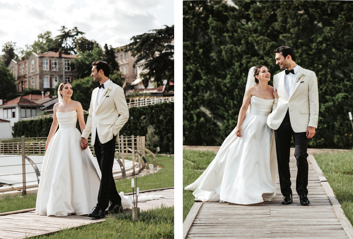 Невеста выбрала свадебное платье от Beyaz Butik. Пара встречалась на протяжении шести лет перед тем, как скрепить свои отношения официально. Обряд бракосочетания провел мэр района Сарыер, а свидетелями со стороны жениха выступили Нуреттин Бостанджыоглу и Корай Кантарджы, со стороны невесты — Локман Канат и Элиф Тутаркабан.